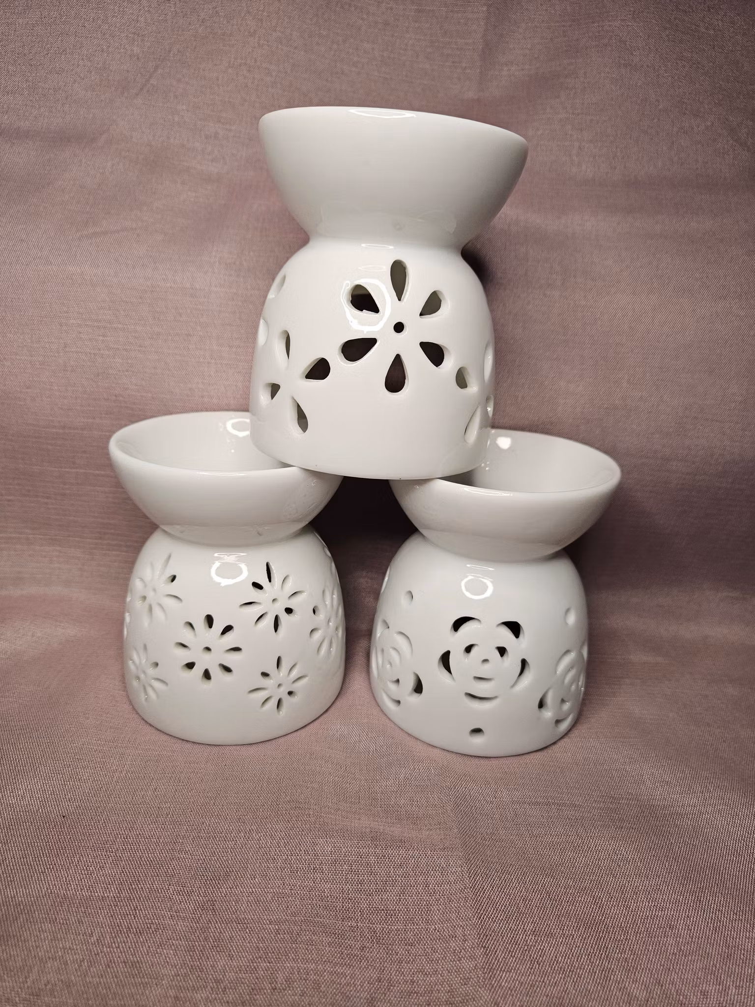 Dessa aromalampor, även kallade oljebrännare, är en bra presentidé för alla speciella tillfällen. Keramisk aromalampa är bra att använda med doftoljor/eteriska oljor för att ge mysig doft. Tack vare mönstret på aromalampan som släpper ut ljusstrålar så skapas den där avkopplande atmosfären. Mysigt! Häll först vatten i lampans kopp, droppa sedan några droppar eterisk olja med den doft du tycker om, tänd ett värmeljus och placera under koppen inuti lampan. Du kan även värma upp din massageolja. Du fyller koppen med vatten och ställer en tjockbottnad glas i vattnet där du sedan fyller på med olja. Använder du eterisk olja till kroppen var noga med att detta är oljor för hud och inte endast endast doftolja !